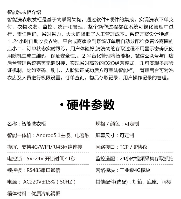 智能洗衣柜可投放于小區(qū)、校園、醫(yī)院、公寓等人流量大且密集的區(qū)域。智能柜搭載移動(dòng)互聯(lián)網(wǎng)、物聯(lián)網(wǎng)等相關(guān)技術(shù),結(jié)合洗衣軟件,搭建起洗衣智能化自助平臺(tái)。是洗衣行業(yè)的人工智能與互聯(lián)網(wǎng)+生活服務(wù)融合下的洗滌新模式。
