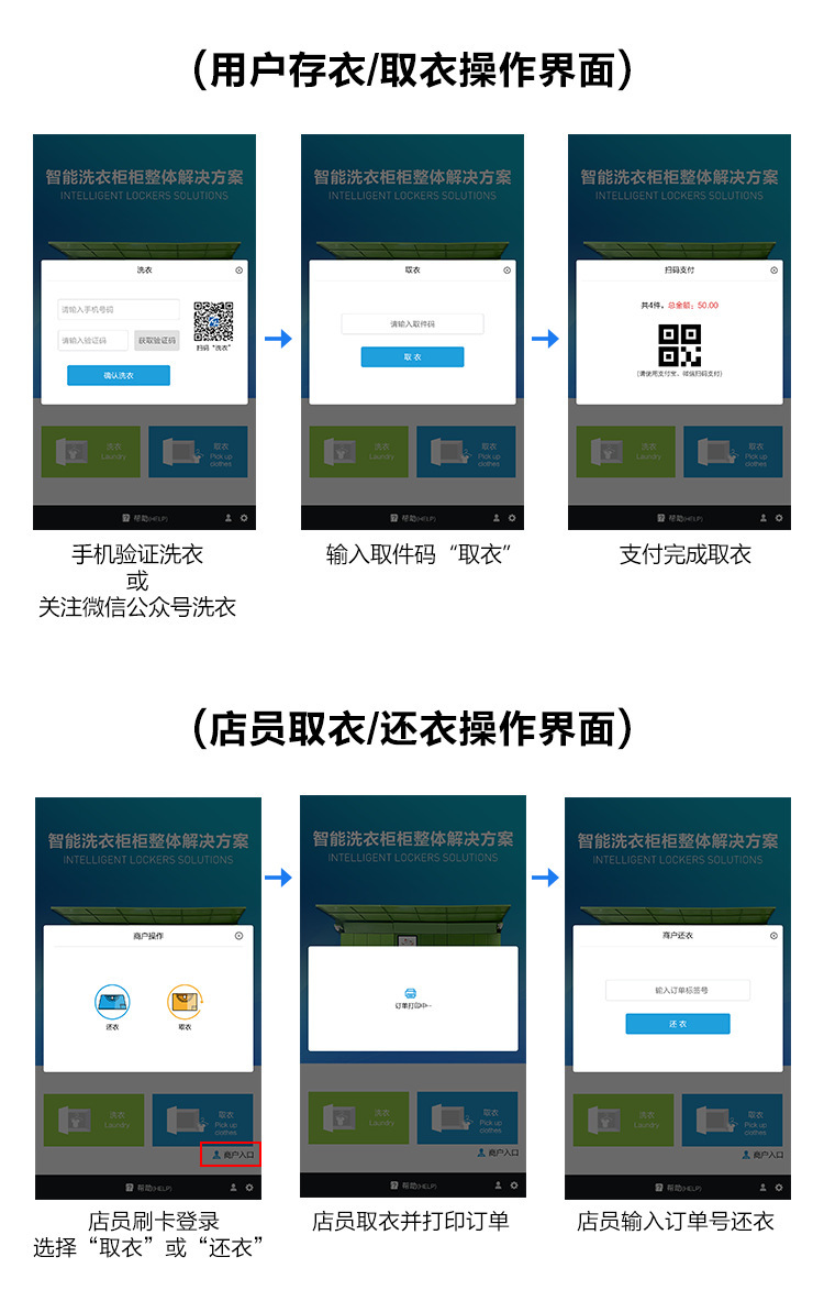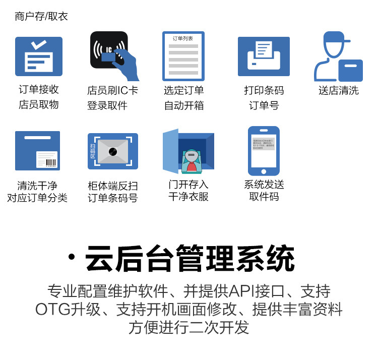 當(dāng)今大數(shù)據(jù),人工智能,物聯(lián)網(wǎng)等技術(shù)手段的革新,自助經(jīng)濟(jì)服務(wù),給人們帶來(lái)方便和全新的購(gòu)物體驗(yàn)。把生活與智能化緊密結(jié)合,提升生活幸福感。智能洗衣柜是顧客與洗衣店之間的物流智能柜,洗衣店為需要洗衣、洗鞋、干洗等用戶(hù)提供全天24小時(shí)自助服務(wù)。